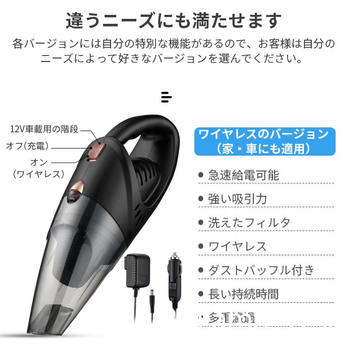 ハンディクリーナー 掃除機 乾湿 カークリーナー ミニ掃除機 強力 吸引力 車 小型 軽い コードレス 車載用品 車中泊グッズ USB給電式 簡単に掃除 長い連続時間 サイクロン 車のシガーライター電源 年末掃除 大掃除対策